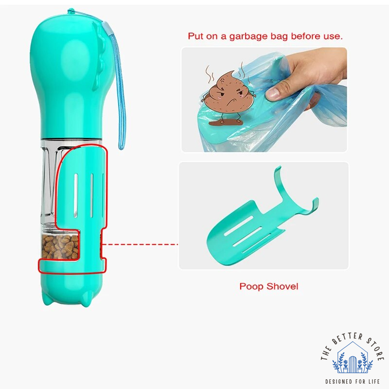 ✔ 3-in-1 Design: This multifunctional marvel combines a water bottle, feeder and poop scooper all in one compact unit